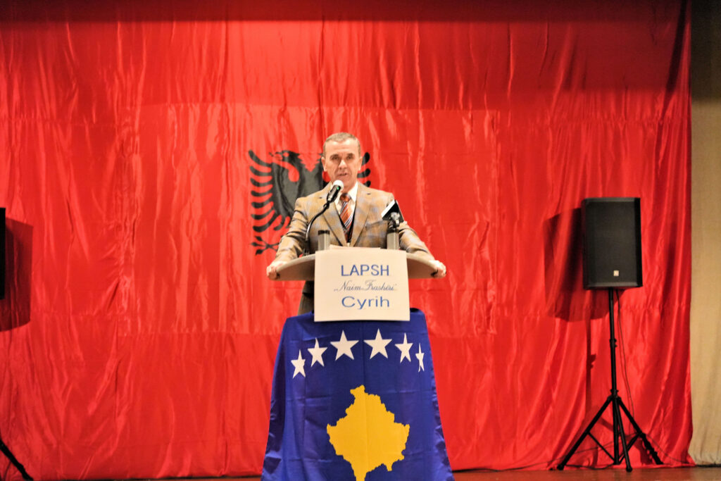 Ndër të parët në skenë u ngjit Naser Ulaj, kryetar i LAPSH për kantonin Cyrih. Ai falënderoi të pranishmit dhe theksoi se këtë vit vendosi të mos mbajë një fjalë të gjatë, për t’ia lënë skenën nxënësve që ishin përgatitur me muaj të tërë.