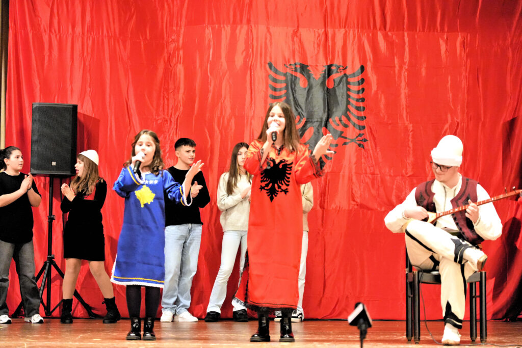 Interpretimi i këngës “Pa duvak s’kam me u ba nuse” nga Nina Jahiu e Siera Elshani u shoqërua me brohori. U lexuan poezi kushtuar Skënderbeut, flamurit dhe atdheut.