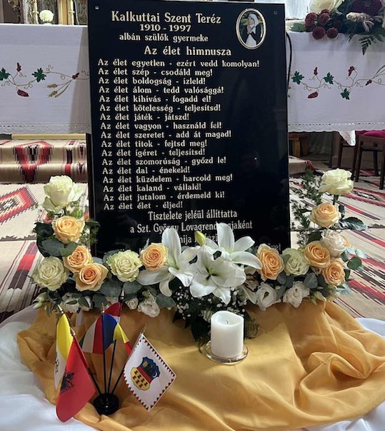 Në këtë komunitet transilvan, u bënë homazhe dhe u vendos një pllakë përkujtimore prej graniti të zi, e kushtuar shenjtores shqiptare Nënë Tereza, me mbishkrimin “Himni i Jetës”. Kjo është një nga disa pllakat që Avni Hafuzi, Lovag, Konsull Nderi i Shqipërisë në Hungari dhe Ambasador i Paqes, ka dhuruar në Hungari, Malësi, Vojvodinë dhe së fundmi në Transilvani.