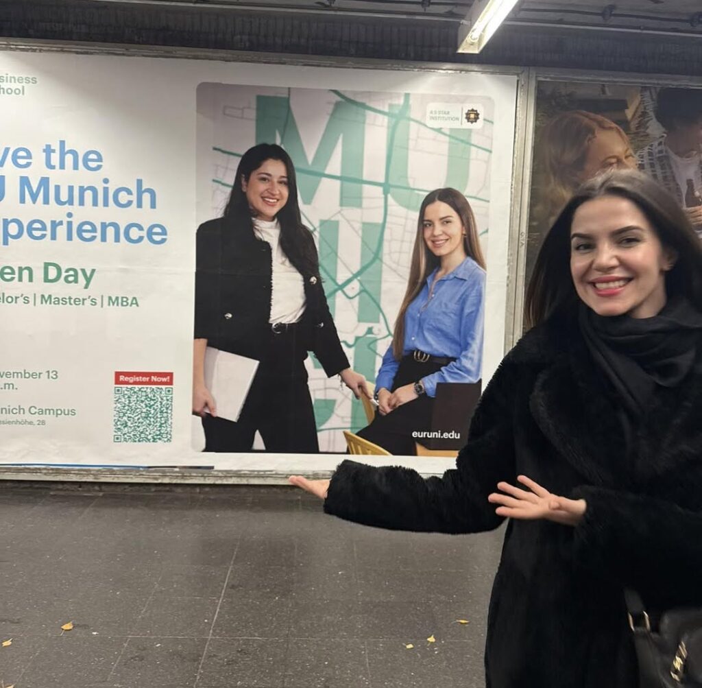 Nga një studente që ecën me ëndrra dhe libra në duar, Lirije ka kaluar në role kyçe: këshilltare për studentë, anëtare e bordit në Klubin e Financave, oficere e vizave për studentë, dhe sot, imazhi i saj përdoret në bilborde në Gjermani, ku ajo ushqen veten me dije dhe përfaqëson shkollën me krenari.