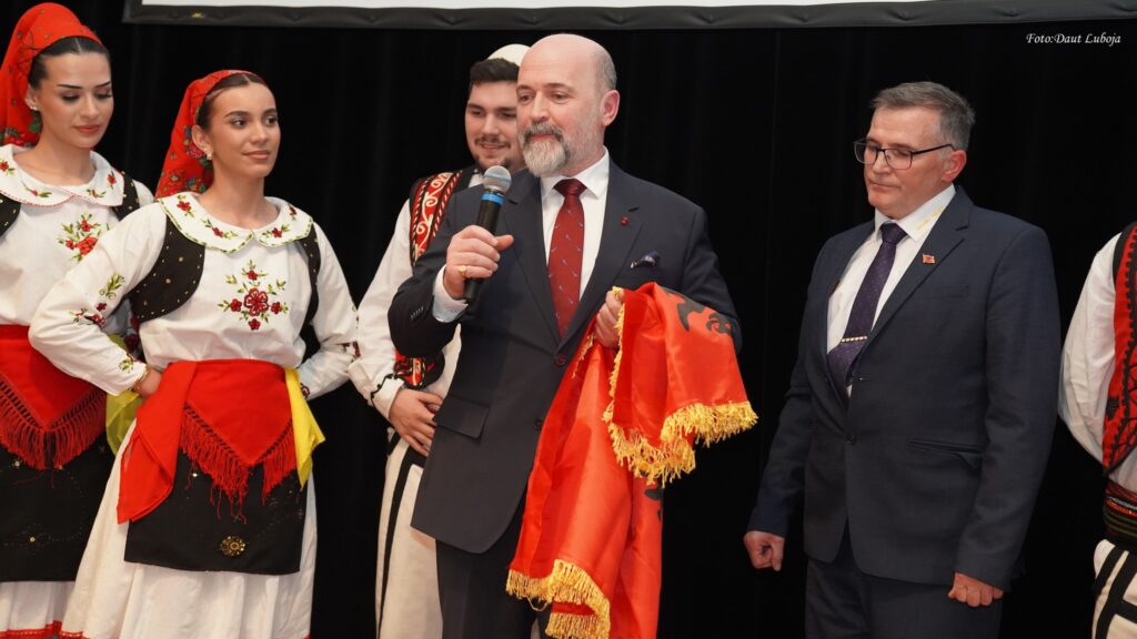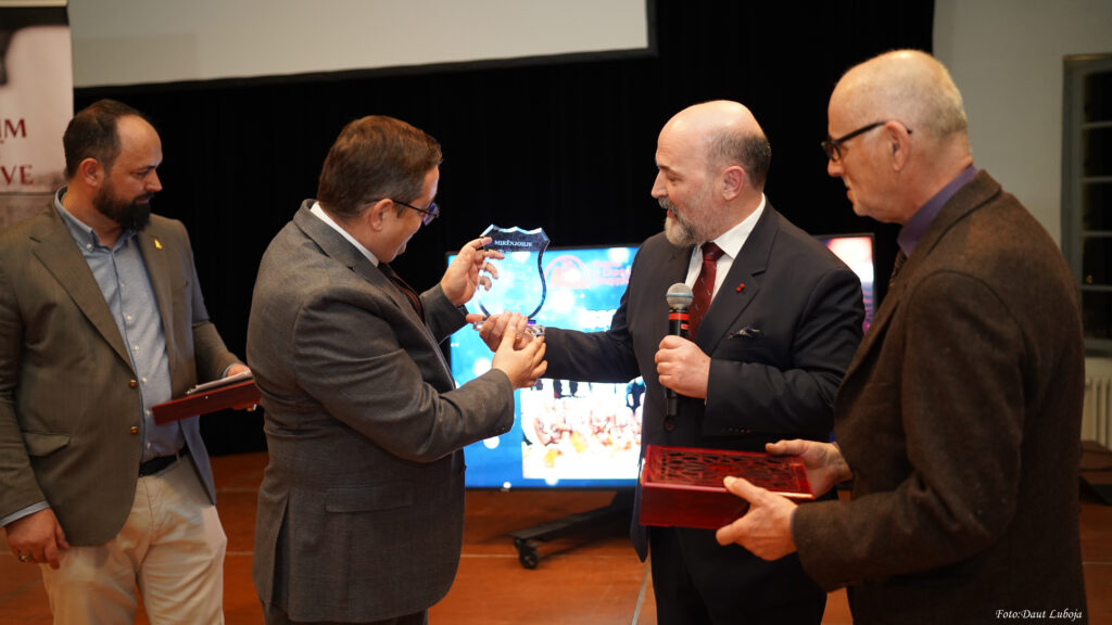 Gjatë mbrëmjes u promovuan librat “Udhëtim drejt rrënjëve” dhe “Rexhep Demiri – Dritëhijet e një rrugëtimi diplomatik” (Shtëpia Botuese “Libri im”, Pejë, 2026), vepra që pasqyrojnë rrugëtimin identitar, historik dhe diplomatik të figurave dhe përvojave shqiptare në diasporë. Një moment i veçantë ishte ndarja për herë të parë e çmimit “Ikona e Diasporës Shqiptare”, një çmim i veçantë i krijuar dhe dhënë nga Instituti Shkencor Helvetik i Evropës Juglindore, me qendër në Cyrih, Zvicër, për të nderuar figurat më meritorë të diasporës shqiptare që ruajnë identitetin, kulturën dhe traditat kombëtare kudo që jetojnë. Në këtë rast, çmimi iu dorëzua ambasadorit të Republikës së Maqedonisë së Veriut në Zvicër, z. Rexhep Demiri, një vlerësim që u mbajt sekret deri në çastin e fundit, duke dëshmuar se ende ekzistojnë njerëz që e mbajnë fjalën dhe dinë të nderojnë me dinjitet.