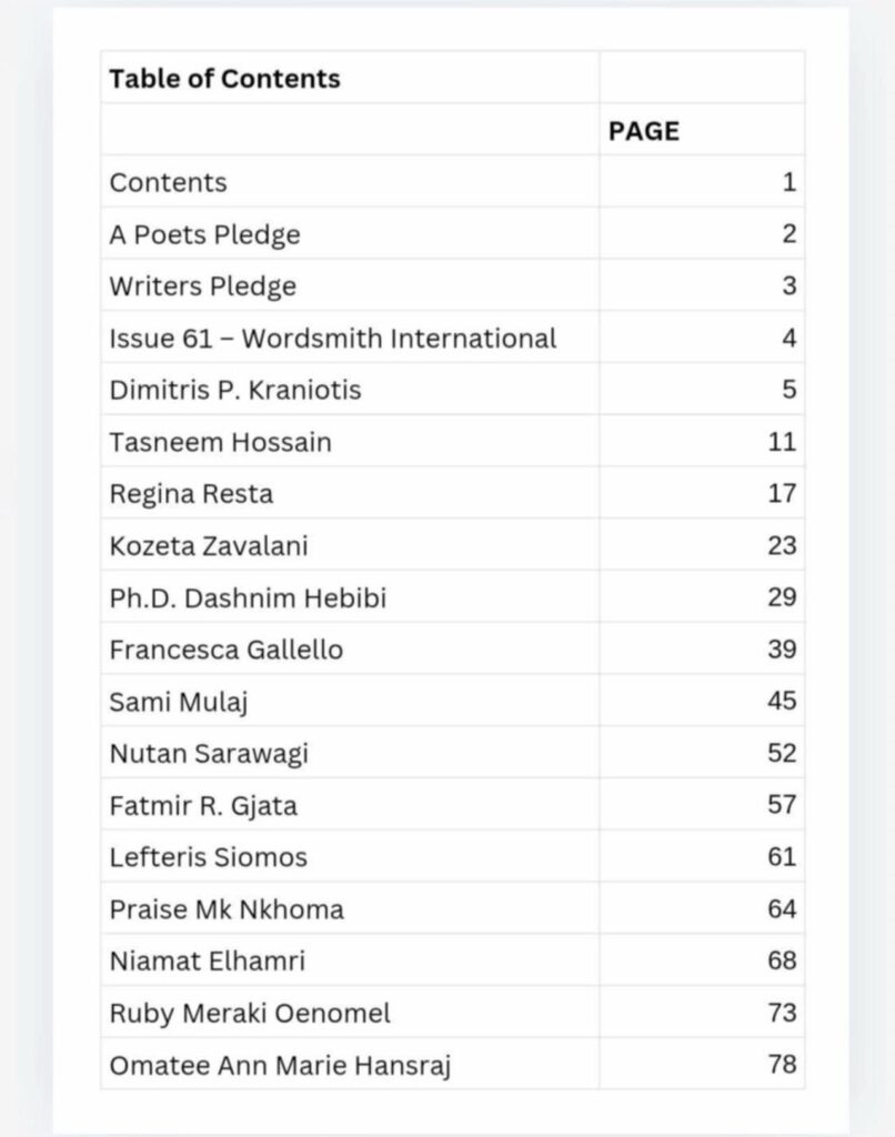 Në një kohë kur fjala shpesh humbet në zhurmën e përditshmërisë, poeti dhe krijuesi PhD.Dashnim Hebibi që jeton dhe vepron në Zvicër sjell një dëshmi të fuqishme se arti i vërtetë lind nga shpirti dhe gjen rrugën e tij drejt botës. Së fundmi, ai ka ndarë me publikun një arritje të rëndësishme në udhëtimin e tij krijues: publikimin e vargjeve të tij në faqet e revistës ndërkombëtare Wordsmith, një botim periodik i printuar në Florida.