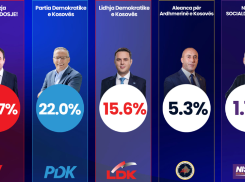 Partia Demokratike e Kosovës (PDK) renditet e dyta me rreth 22.0% të përkrahjes, ndërsa Lidhja Demokratike e Kosovës (LDK) zë vendin e tretë me rreth 15.6% të votave.