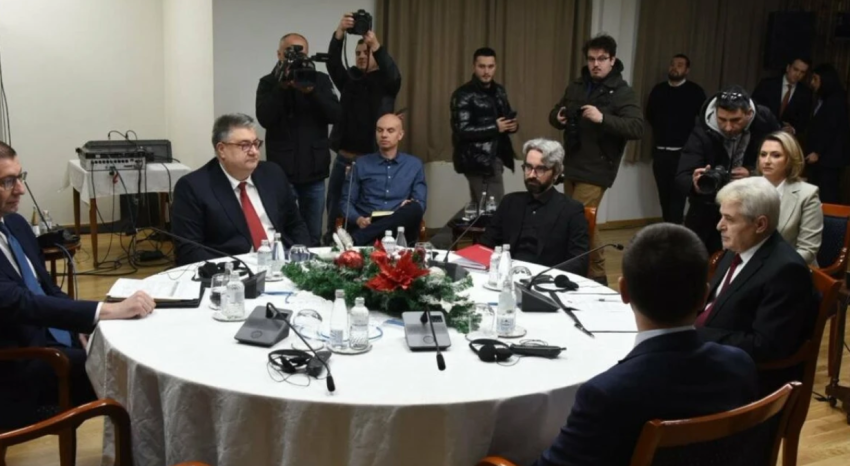 Ndryshe nga paralajmërimi, për pjesëmarrje të kreu të ZNAM, Maksim Dimitrievski, në takim po merr pjesë ministri i Administratës, që vjen nga kjo parti, Goran Minçev.