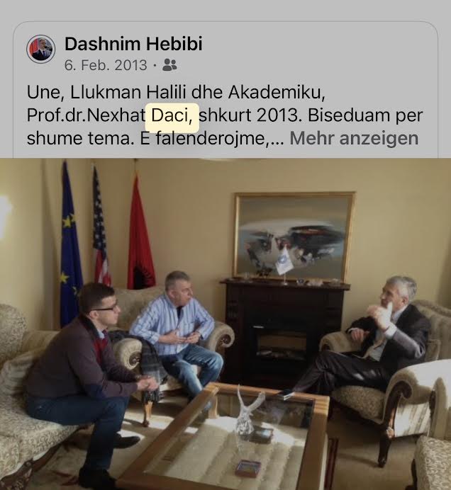 Në emrin tim personal, të familjes sime, të Shoqatës “Lugina e Preshevës” në Zvicër, dhe të Institutit Shkencor Helvetik për Evropën Juglindore, i shpreh ngushëllimet më të sinqerta familjes Daci, miqve të tij të vërtetë, Luginës së Preshevës dhe mbarë kombit shqiptar.