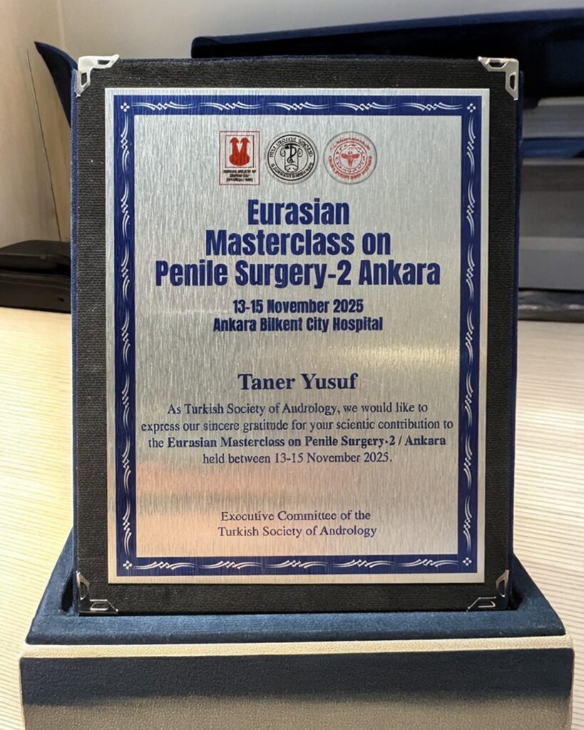 Momente të veçanta vijnë nga pjesëmarrja e Dr. Tanerit në Euroasian Masterclass “Penile Surgery”, mbajtur në Ankara më 13–15 Nëntor 2025. Gjatë këtij aktiviteti prestigjioz, ai prezantoi qasjet më të avancuara kirurgjikale dhe kontribuoi në diskutime të nivelit të lartë me ekspertë ndërkombëtarë të fushës.