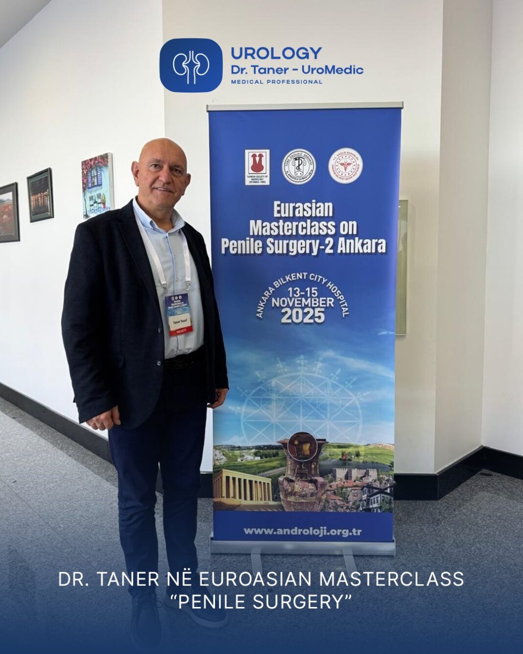 Momente të veçanta vijnë nga pjesëmarrja e Dr. Tanerit në Euroasian Masterclass “Penile Surgery”, mbajtur në Ankara më 13–15 Nëntor 2025. Gjatë këtij aktiviteti prestigjioz, ai prezantoi qasjet më të avancuara kirurgjikale dhe kontribuoi në diskutime të nivelit të lartë me ekspertë ndërkombëtarë të fushës.