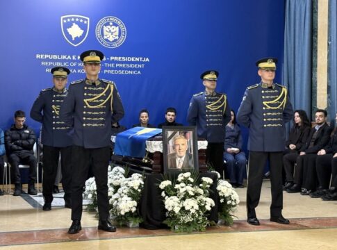 Presidentja Osmani, së bashku me zotëriun e parë, Prindon Sadriu, kanë bërë homazhe pranë arkivolit të ish-kryetarit të Kuvendit.
