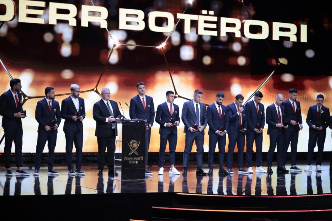 Një nga trofetë më të rëndësishëm të akorduar mbrëmjen e sotme në Galanë “Topi i Artë 2025” ishte nderimi i lojtarëve të Kombëtares për arritjen e këtij objektivi madhor dhe historik.