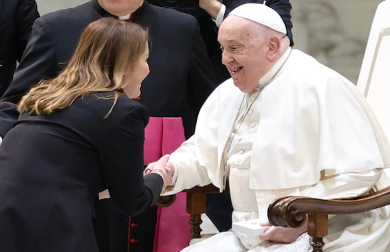 Pas audiencës, Ministrja Manastirliu, së bashku me delegacionin shqiptar, pati mundësinë të takonte Atin e Shenjtë, Papa Françeskun.