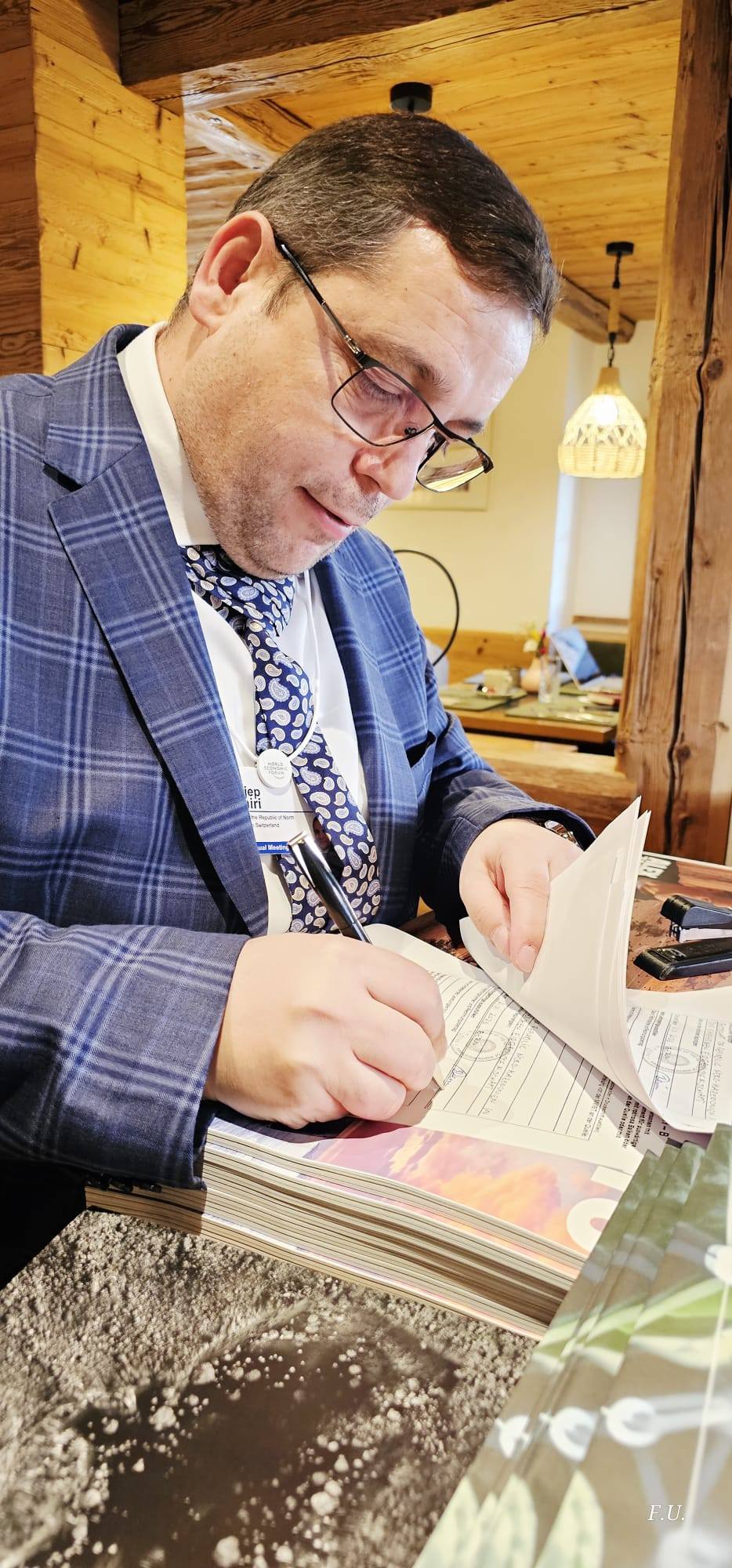 Me nder dhe përgjegjësi të thellë, dëshiroj t’ju informoj për zhvillimet gjatë pjesëmarrjes sime në Forumin Ekonomik Botëror në Davos, i cili u zhvillua nga 19 deri më 23 janar. Në cilësinë time si Ambasador i Republikës së Maqedonisë së Veriut në Bernë, pata nderin të përfaqësoj vendin tonë në këtë forum të njohur ndërkombëtarisht, si pjesë e delegacionit qeveritar të udhëhequr nga Kryeministri z. Hristijan Mickoski dhe Ministri i Punëve të Jashtme dhe Tregtisë së Jashtme, z. Timčo Mucunski.
