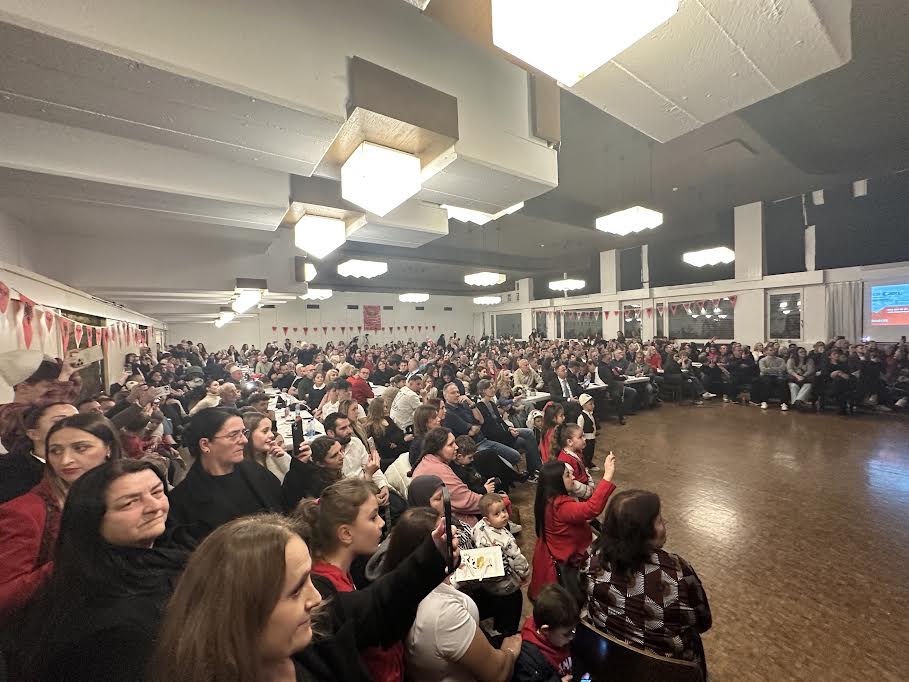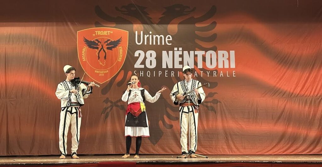 Winterthur, 29 nëntor, 2025 – Një atmosferë e jashtëzakonshme festive bashkatdhetarët e të gjitha trevave shqiptare gjithandej Zvicrës mbushën sallën e Hotel Zentrum Töss në Winterthur, ku mbrëmja kulturore e organizuar nga Ansambli “TROJET” u zhvillua me pjesëmarrje të jashtëzakonshme dhe me energji të veçantë për nder të 28 Nëntorit – Ditës së Flamurit dhe të Pavarësisë. Tingujt e muzikës, vallet, arti dhe tradita shqiptare e bënë këtë natë një përjetim të paharrueshëm. Me një skenë super të bukur ku valonte flamuri kuq e zi.