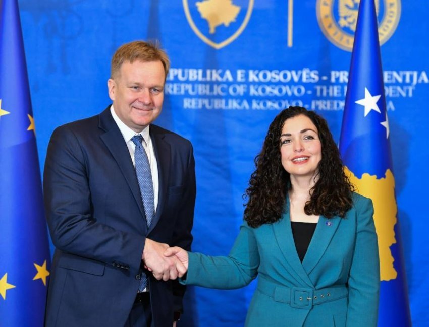 “Presidentja e Republikës së Kosovës, Vjosa Osmani, sot pret në takim Përfaqësuesin e BE-së për Dialog, Peter Sorensen”, thuhet në njoftimin zyrtar të Presidencës.