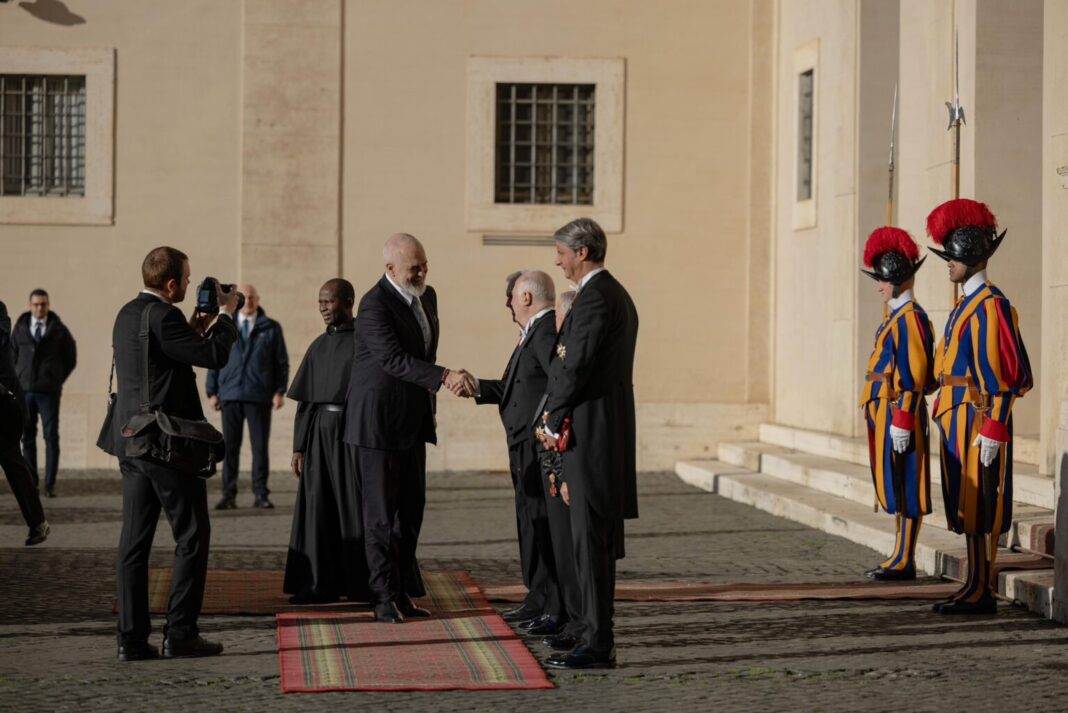 Kryeministri Edi Rama u prit sot në Pallatin Apostolik të Vatikanit, nga prefekti i Shtëpisë Papnore dhe zotërinj të Shenjtërisë së Tij, papa Leone XIV. Pritja i paraprin audiencës që kryeministri Rama do të ketë me papa Leonen XIV, në Bibliotekën Papnore të Pallatit Apostolik.