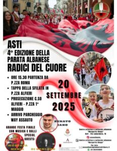 Të shtunën e kaluar, më 20 shtator 2025, për të katërtin vit radhazi, qyteti i Astit në Piemonte të Italisë, u shndërrua në një skenë të madhe sfilate të kostumeve, folklorit dhe traditave shqiptare.