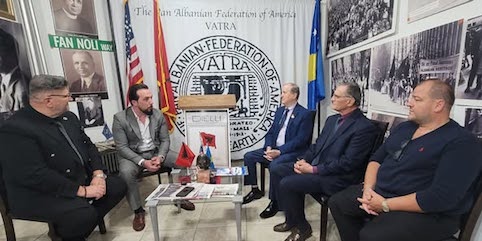 Regjisori dhe producenti Antonjo Gjonaj në fjalën e tij falënderoi Vatrën për mikpritjen dhe punët e mëdha kombëtare përgjatë historisë. Producenti Gjonaj shpjegoi veprimtarinë e tij artistike në Itali e Shqipëri, studimet dhe fokusi në kinematografi, filmat për Rai-n, Mediaset, bashkëpunimet në produksione amerikane e shqiptarëve. Ai tregoi me krenari përfshirjen e Plisit shqiptar në Festivalin e filmit në Venezia dhe së fundmi përpjekjet për të depërtuar në kinematografinë amerikane. Në përfundim të takimit kineastit Gjonaj iu dhurua albumi me pikturat e piktorit Halil Ahmeti. /GD
